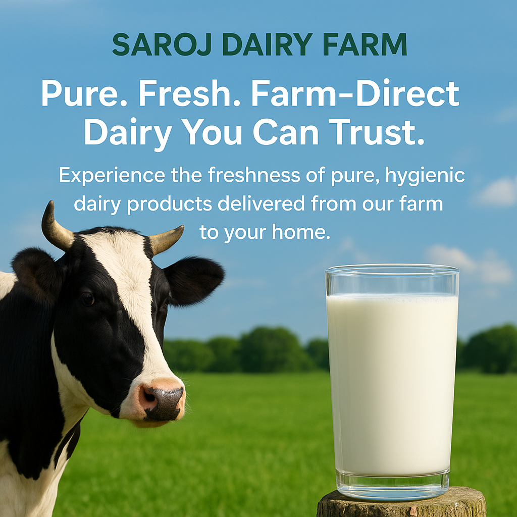 Experience the freshness of pure, hygienic dairy products delivered from our farm to your home. Saroj Dairy Farm ensures natural taste, quality, and daily nutrition for families.